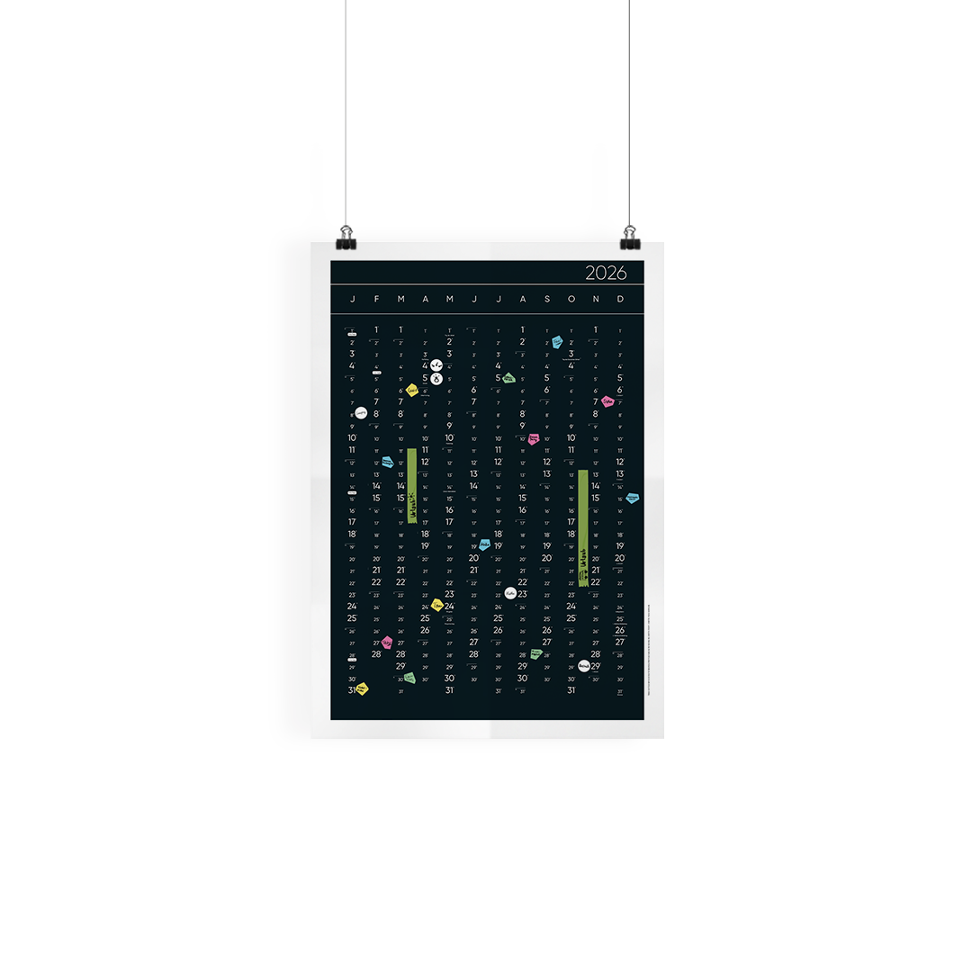 Unser Kalender für 2026 bringt Ordnung in Deine Gedanken und Struktur an Deine Wand.